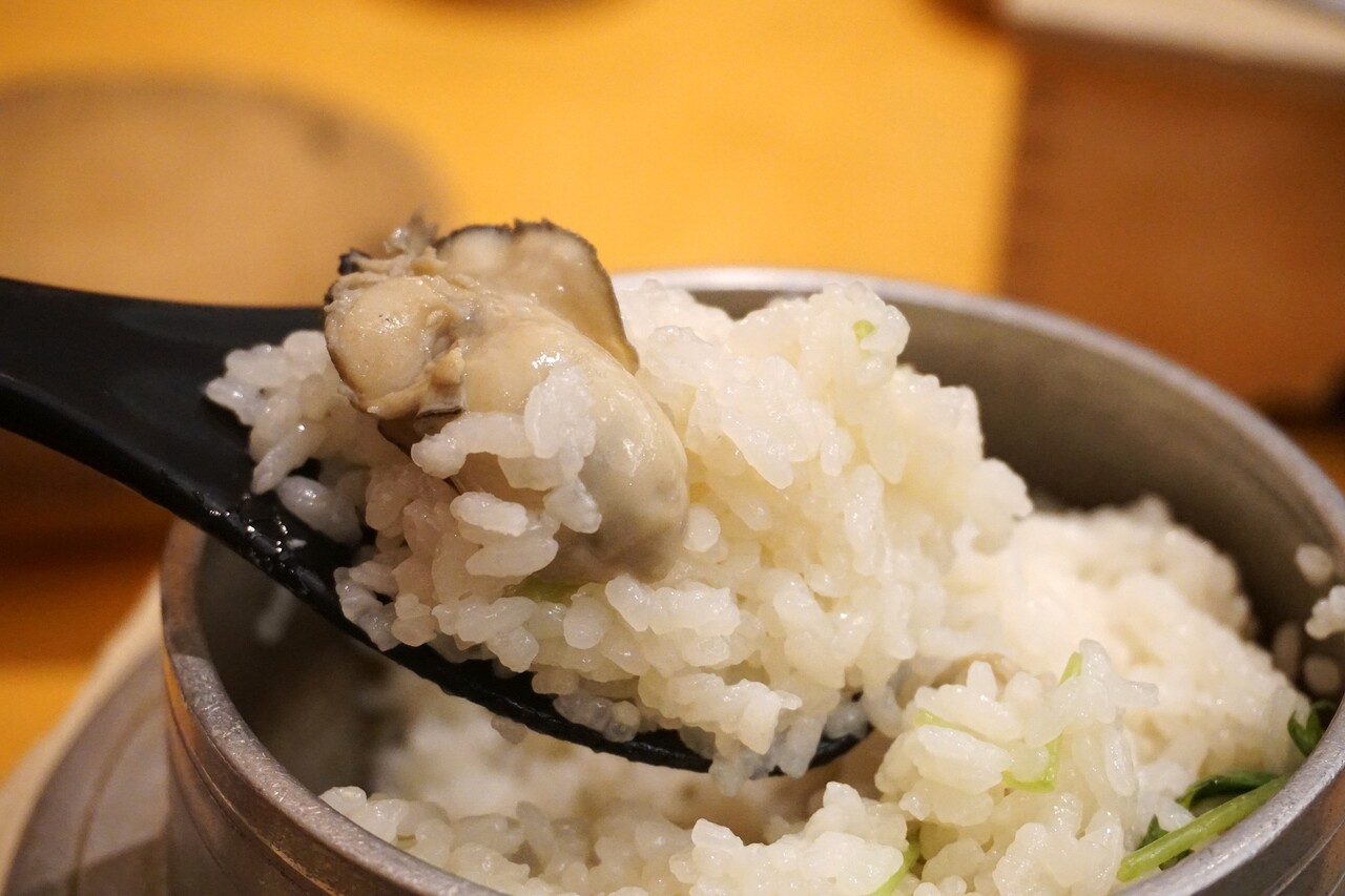 ご飯にも、しっかり旨味がしみていて、牡蠣の美味しさをたっぷり味わえます。