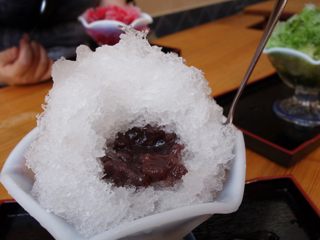 かき氷の中には、たっぷりの粒々アンコが入っているんですよ〜。