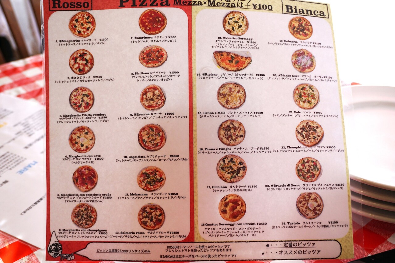 今回はランチで、パスタ『きのことパルミジャーノのスパゲッティ』1,320円・ピッツァ『マルゲリータ』1,500円を頂きました。
