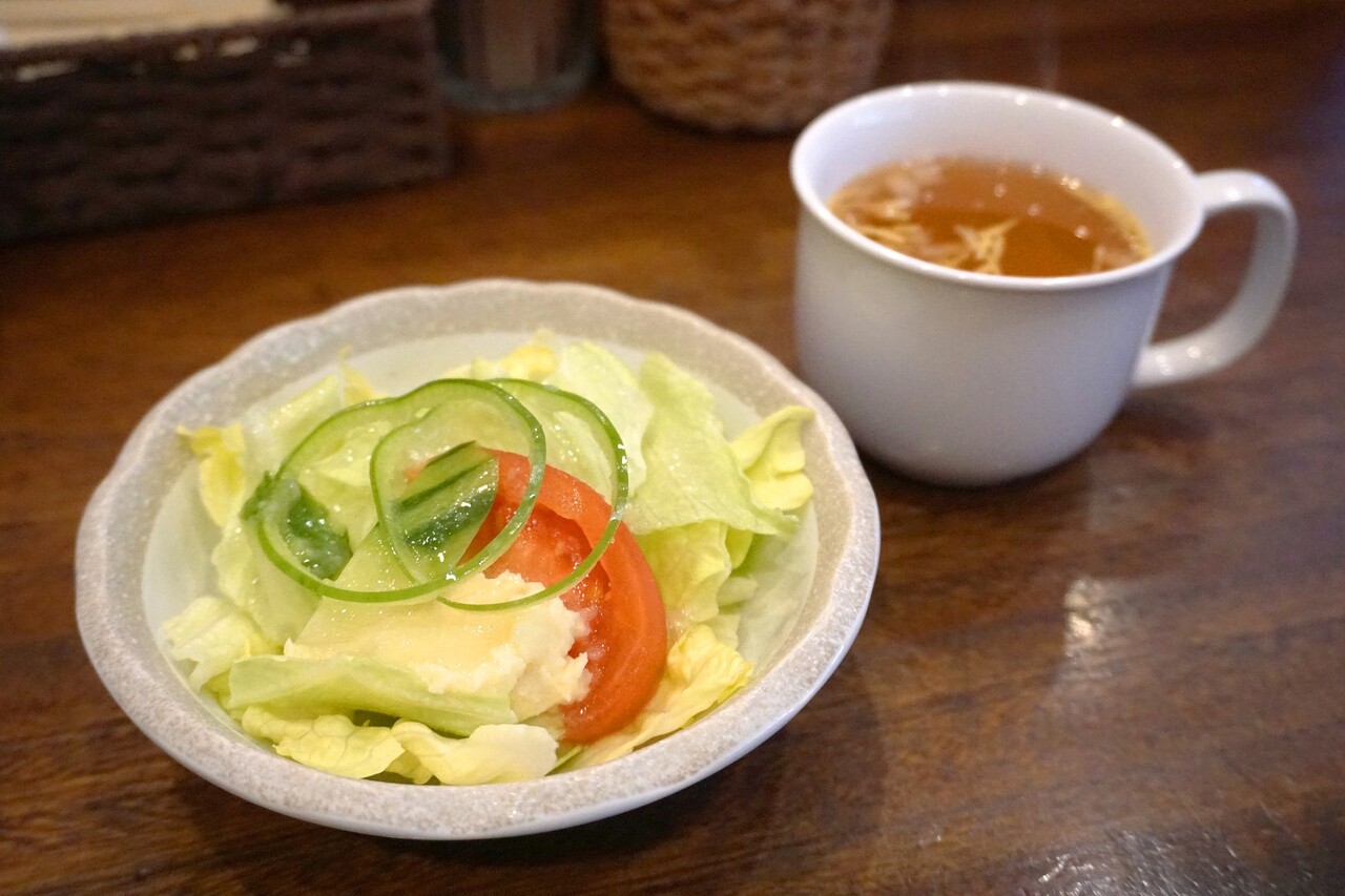 セットには、スープ・サラダ・ライスが付いています。