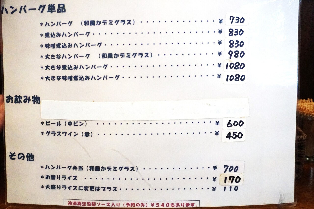 洋食と言っても、メニューはハンバーグがメインです。