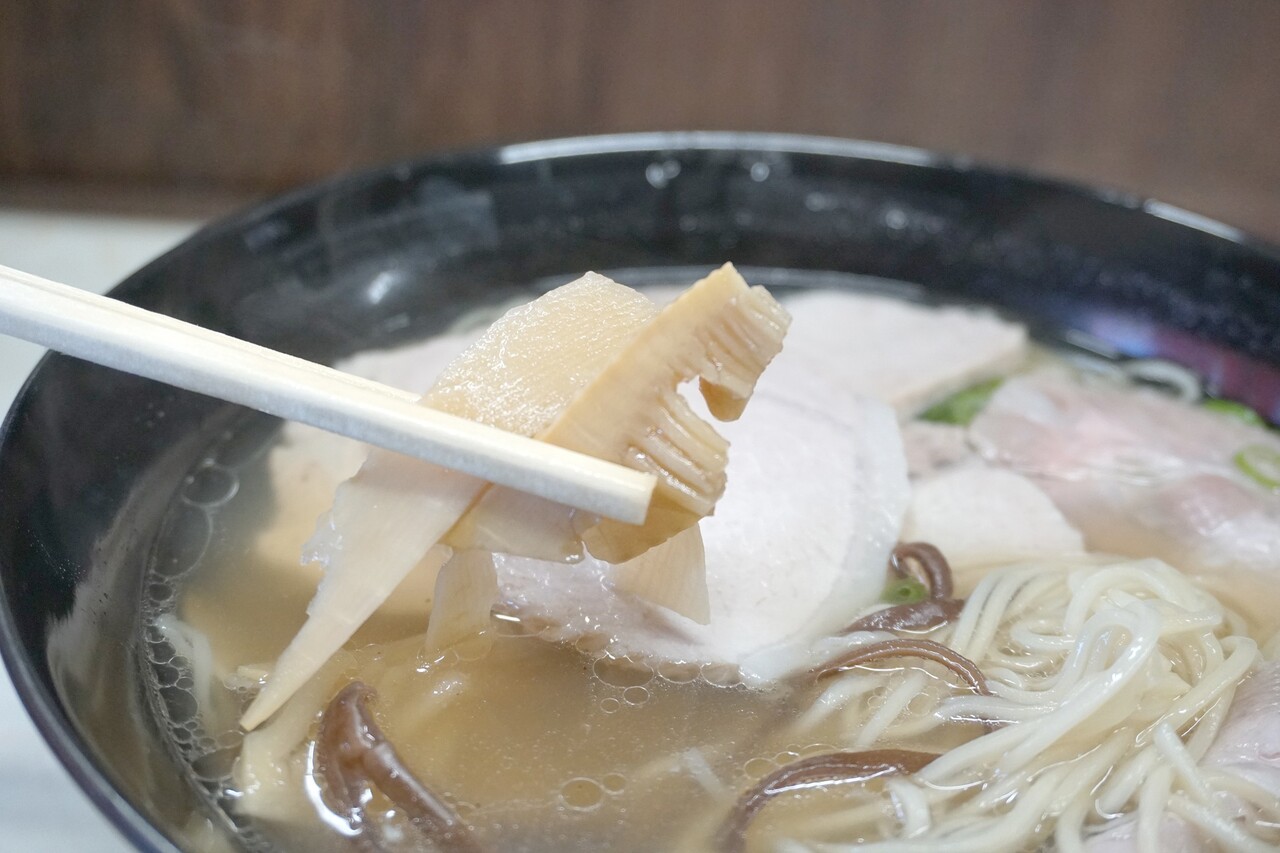 トッピングされたキクラゲやメンマも、クリアなスープに添う味付けがなされています。