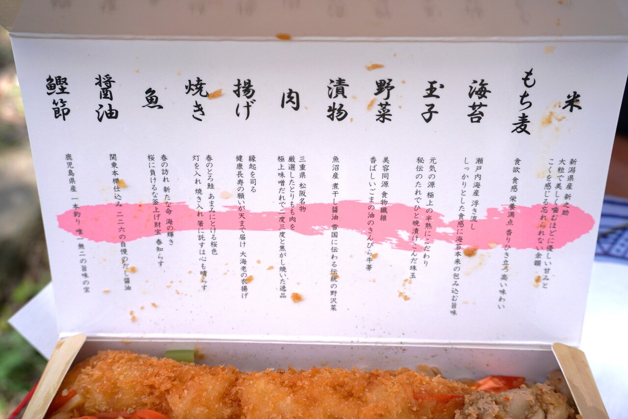 こだわり具合は、蓋の裏側にじっくり説明されてあるので、読みながら頂くと美味しさが増します(笑)。