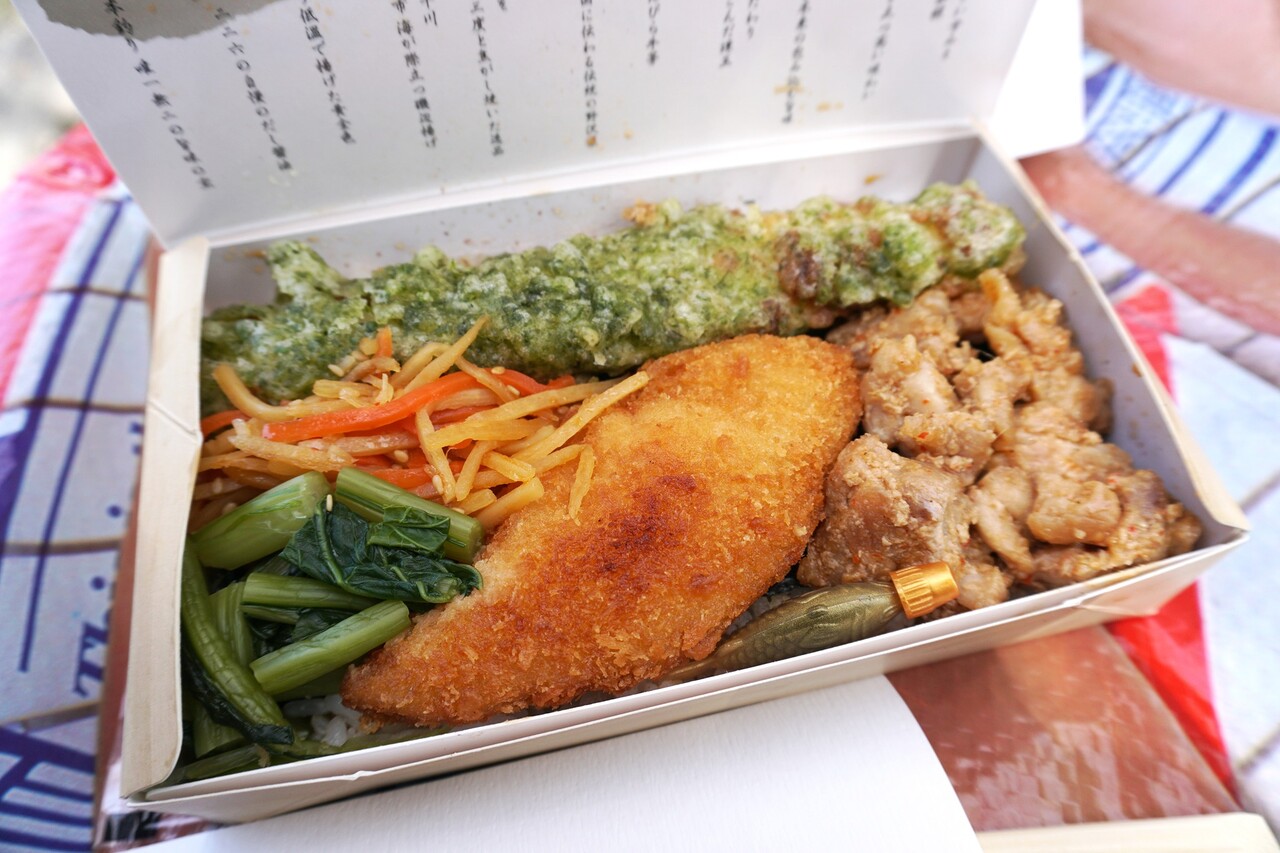 白身魚のフライ・ちくわ天・きんぴらごぼう・海苔・白ご飯が定番の『のり弁』。