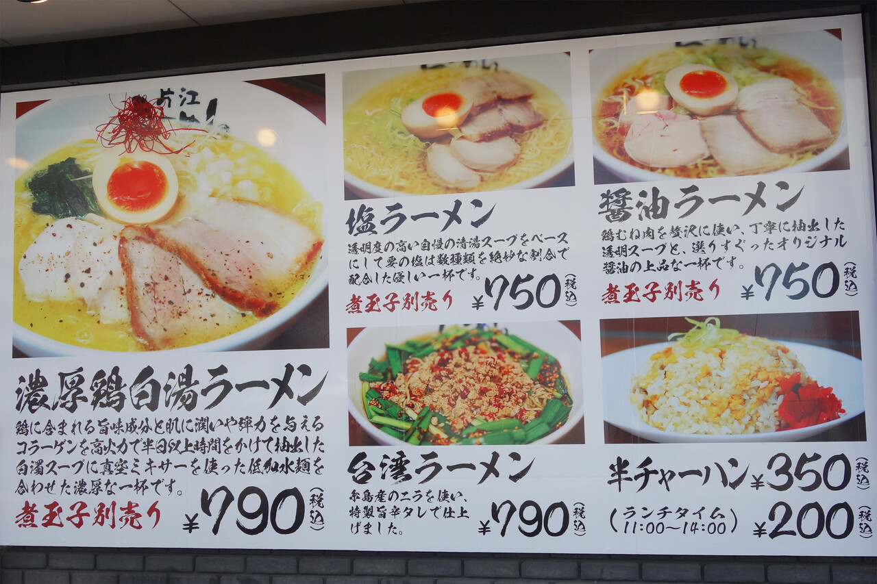 濃厚鶏白湯ラーメンの他に、塩ラーメンや醤油ラーメン、台湾ラーメンがあります。