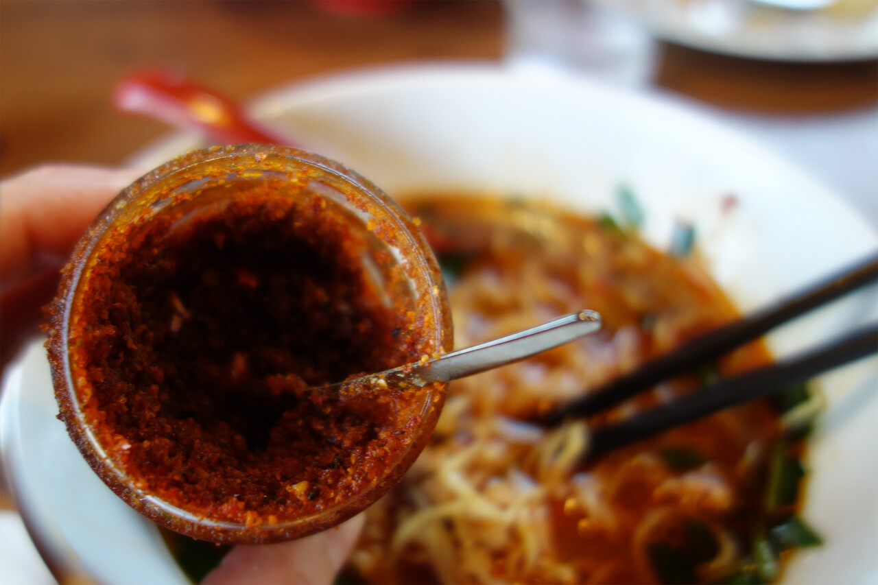 卓上の辛味ペーストを入れると、辛味と旨味が増して美味しかったです。