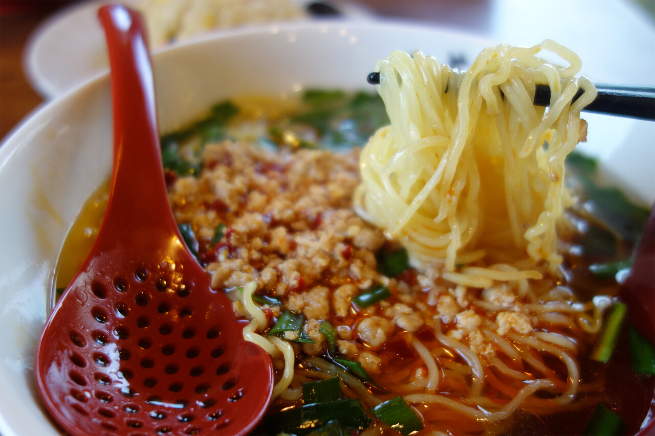 ラー油・豚ひき肉・ニラが特徴ですね。