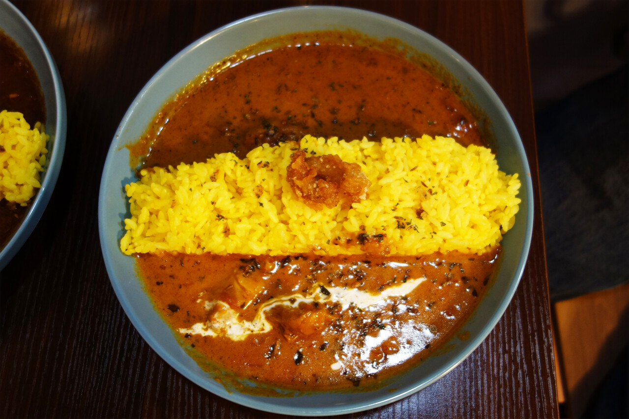 マリシテン(上)&バターチキン(下)のあいがけ(大)980円。