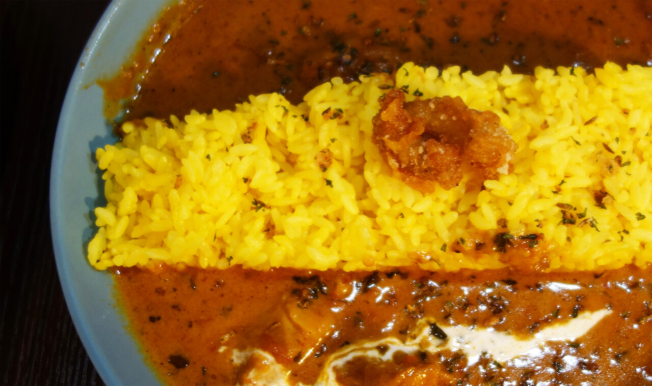 でも、濃ゆいスパイスカレーなので、ライスは多めのほうがイイと思います。