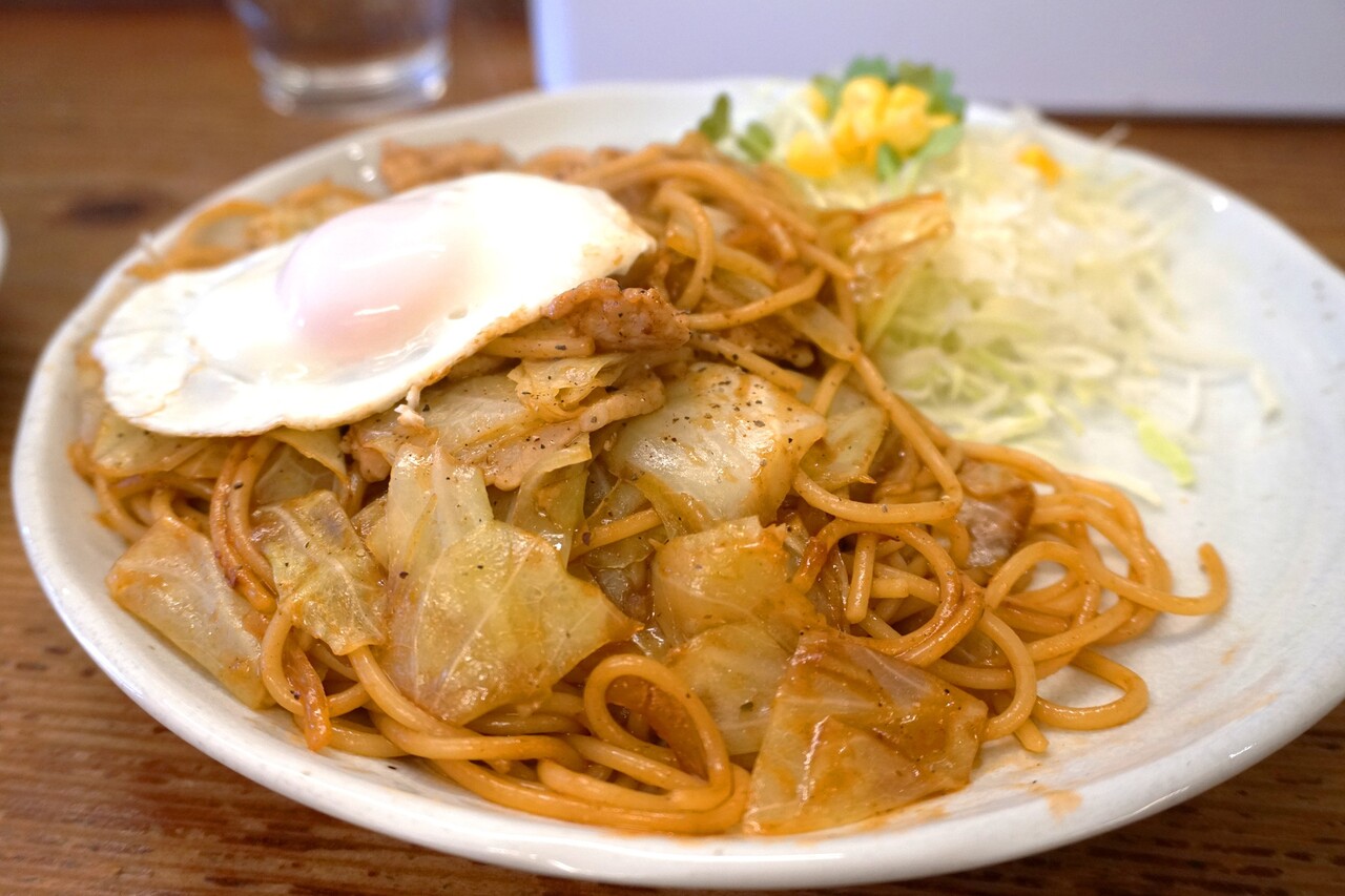 見た目は、目玉焼きがのった普通のナポリタン。