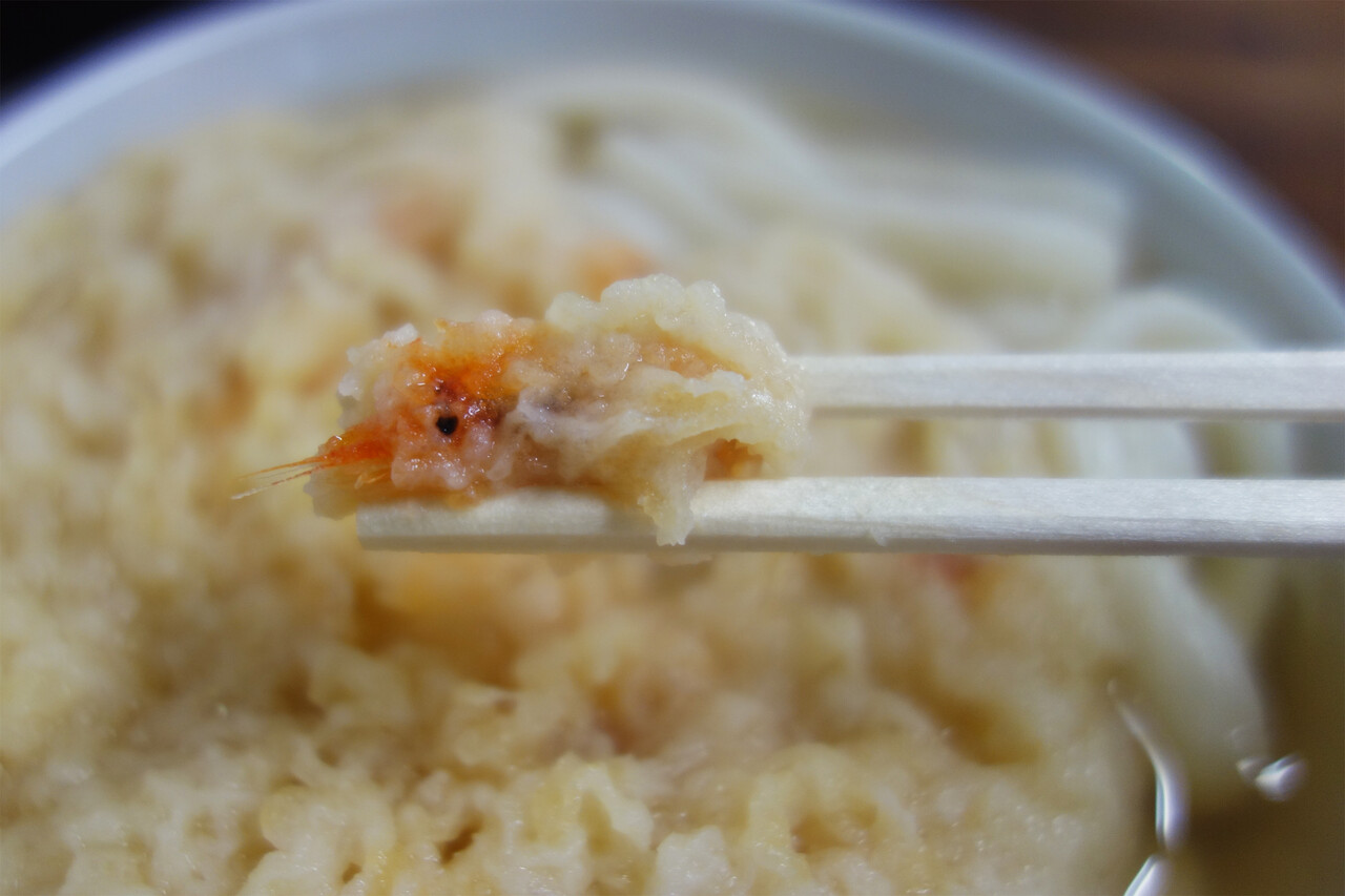 揚げ玉を固めたようなかき揚げの中に、極小の海老が4〜5尾位入ってます。