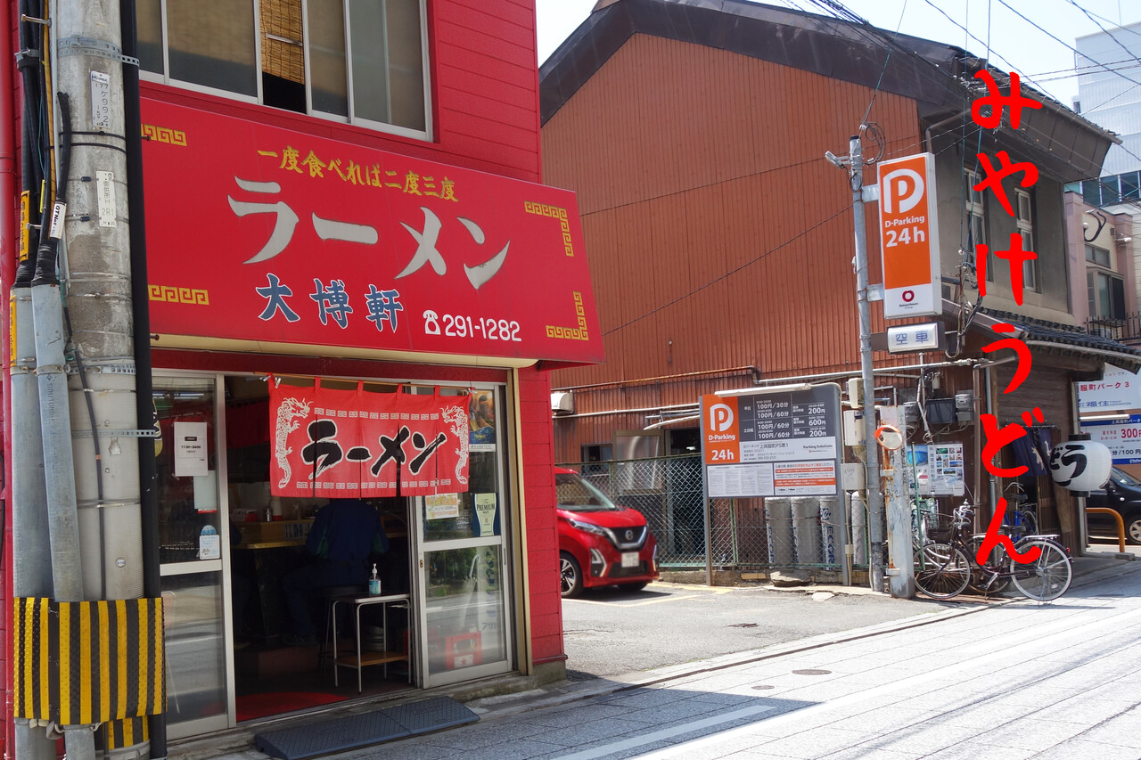 『みやけうどん』の並びにある、レトロなラーメン屋さん『大博軒』。