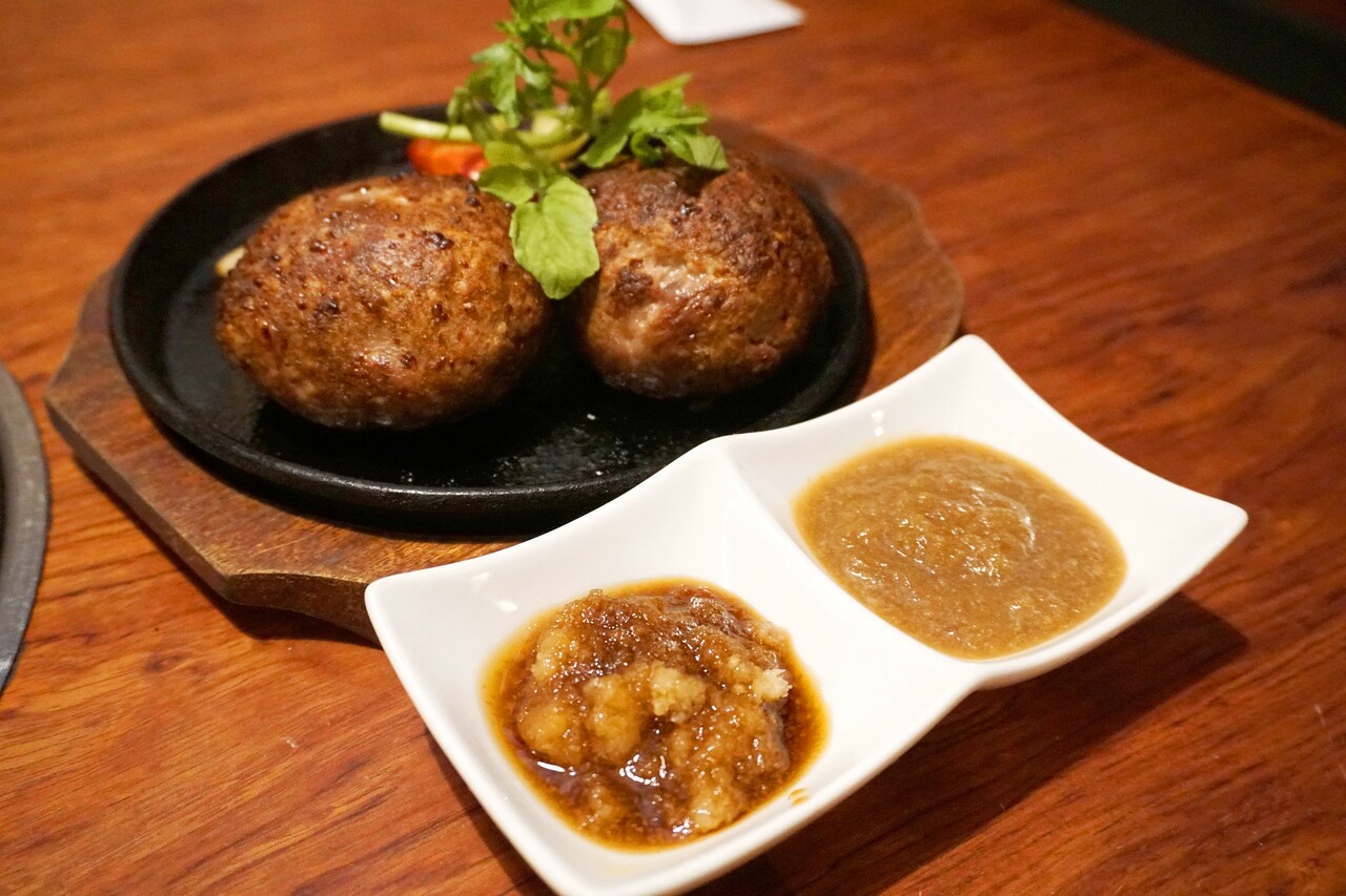 洋食のふわふわ柔らかいハンバーグとは違い、食べ応えがあるタイプ。