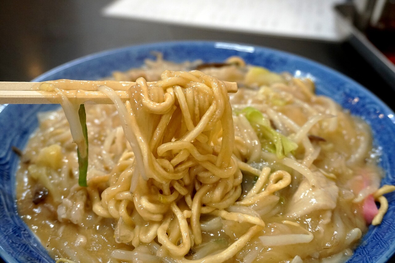町中華らしい素朴な味わいですが、弱点としては餡の粘度が高すぎて太麺とからみにくく、