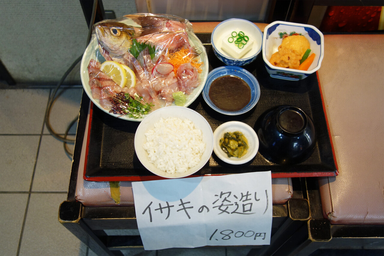 隣のテーブルの観光客の方が召し上がっていた『イサキの姿造り定食』1,800円。