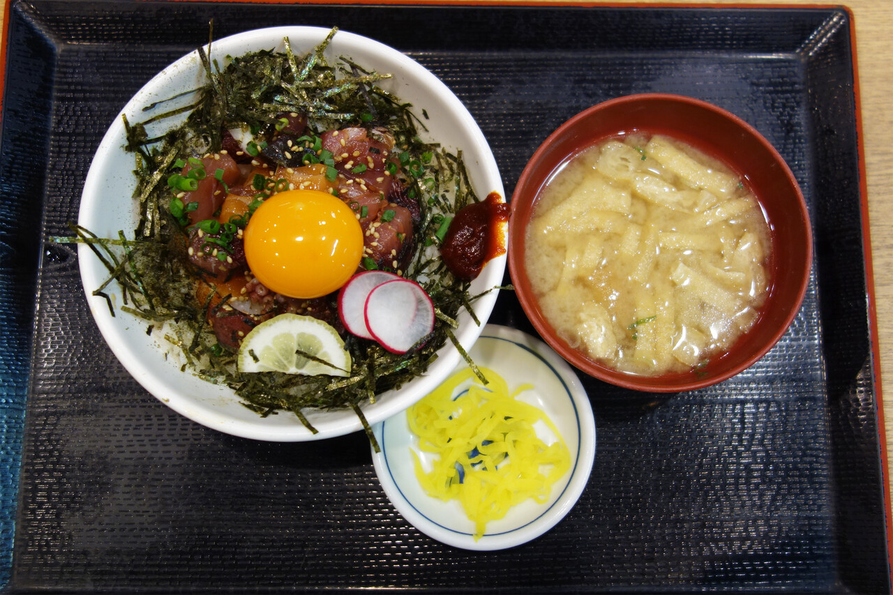 今回は、海鮮丼メニューの中でもお財布にやさしい1,000円の『海鮮ユッケ丼』を頂きました。