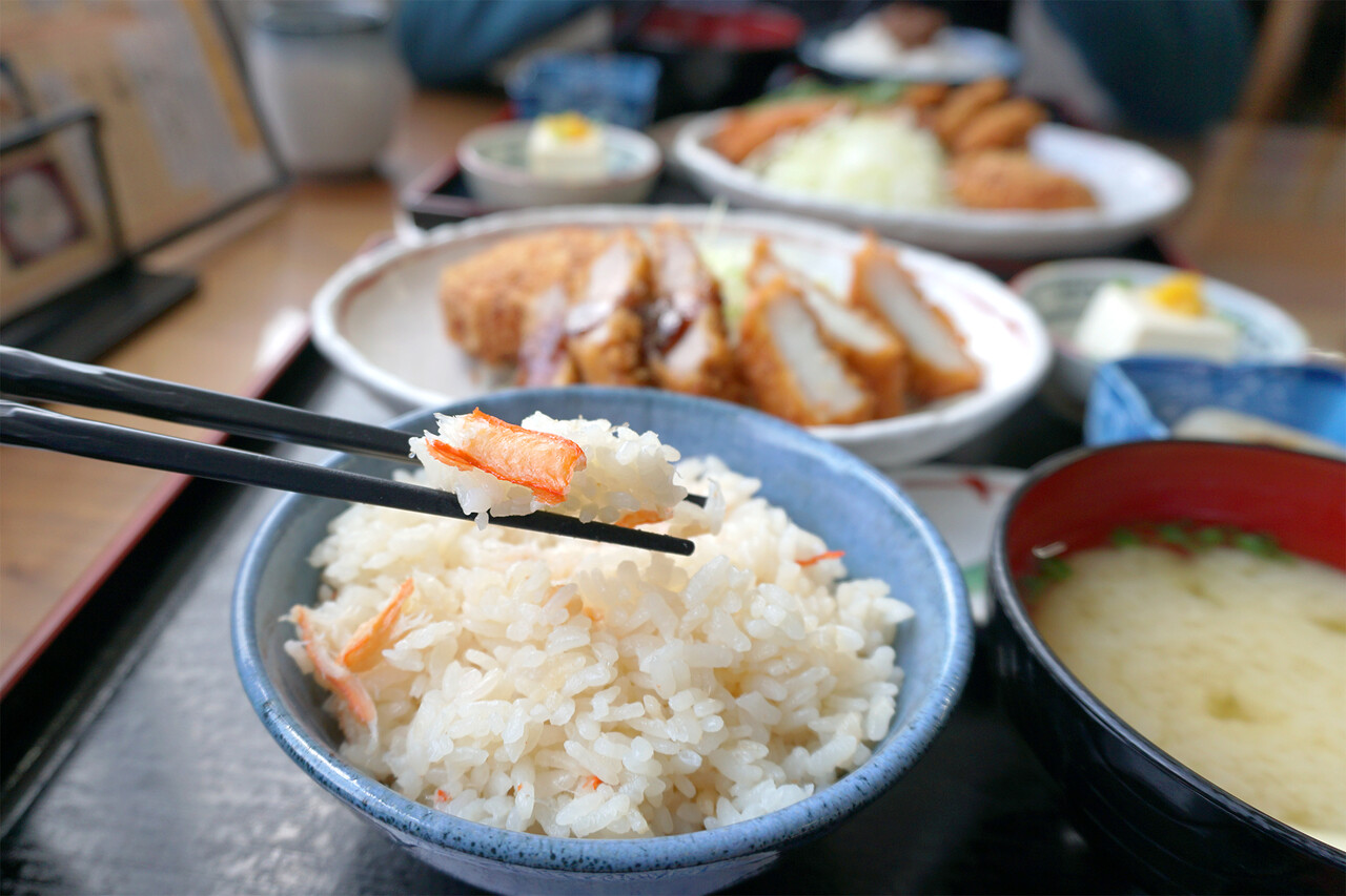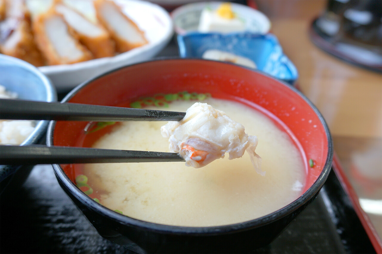 ご飯や味噌汁はオプションでカニ飯やカニ味噌汁に変更できます。