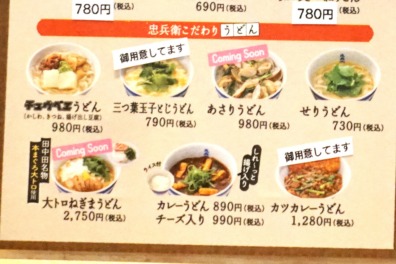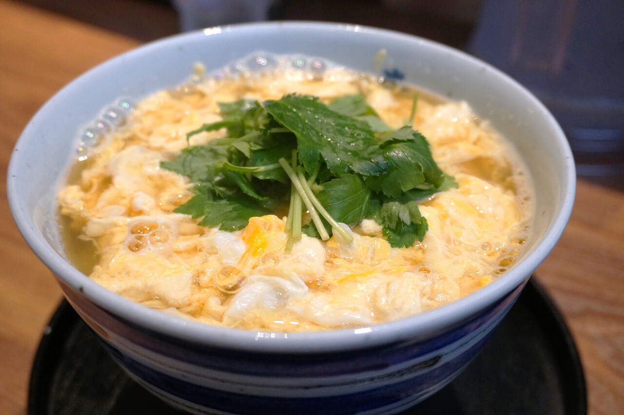 “忠兵衛こだわりうどん”メニューから『三つ葉玉子とじうどん』790円。