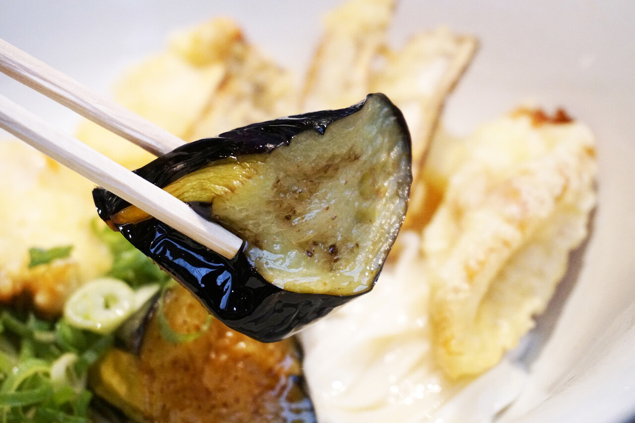 皮がパリッ&中身トロッの茄子の素揚げ。