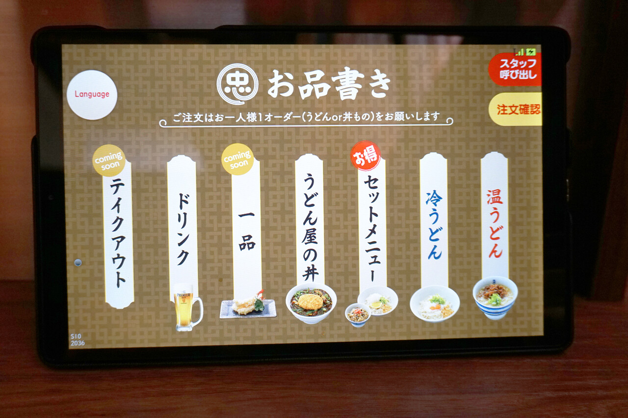 卓上のタッチパネルでオーダーします。