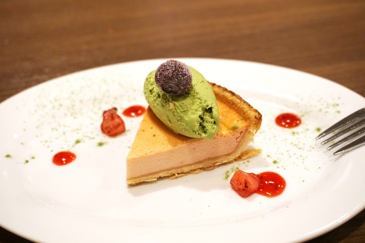 『本日のデザート』は、抹茶のアイスをトッピングしたタルト。