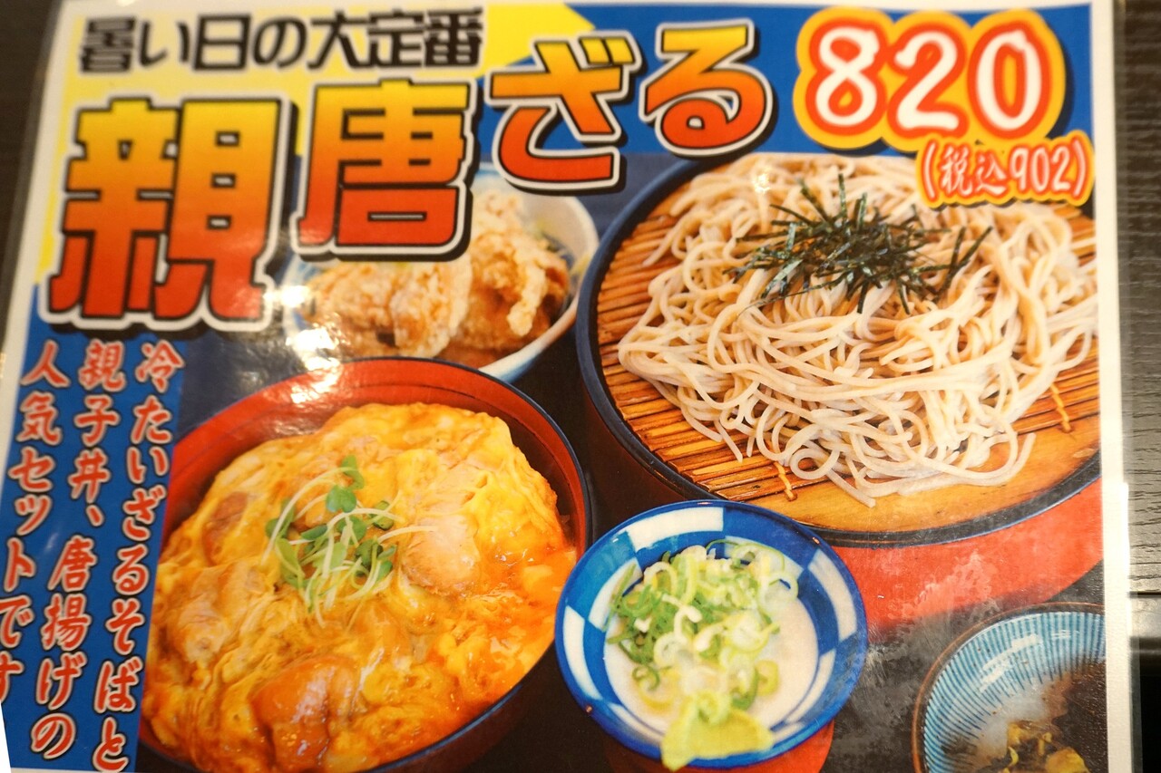 ざるそばに、親子丼・唐揚げがセットになったお得なセットです。