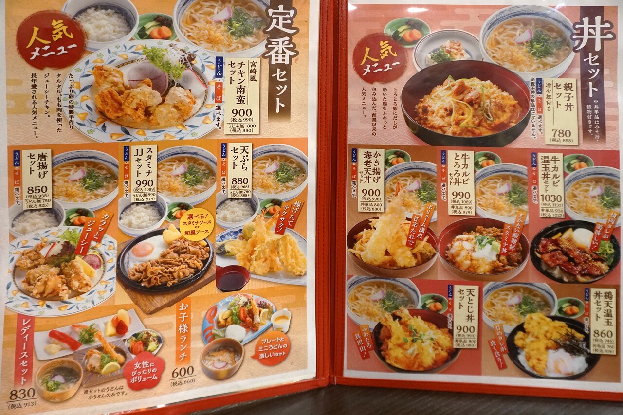 うどんと同じメニューで蕎麦もあり、麺以外の丼や定食もあり、