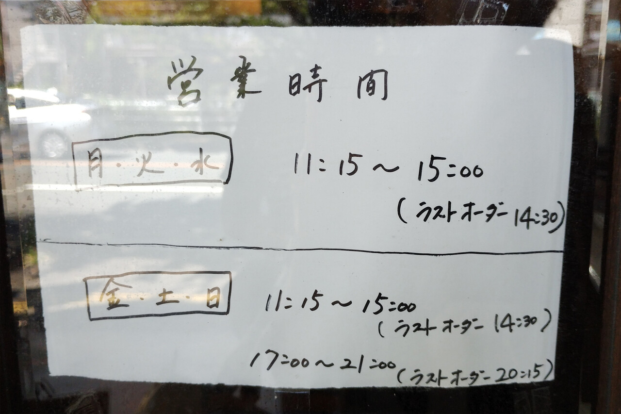 【営業】[月〜水]11:15〜15:00(L.O.14:30) [金〜日]11:15〜15:00(L.O.14:30) 17:00〜21:00(L.O.20:15) ※要確認