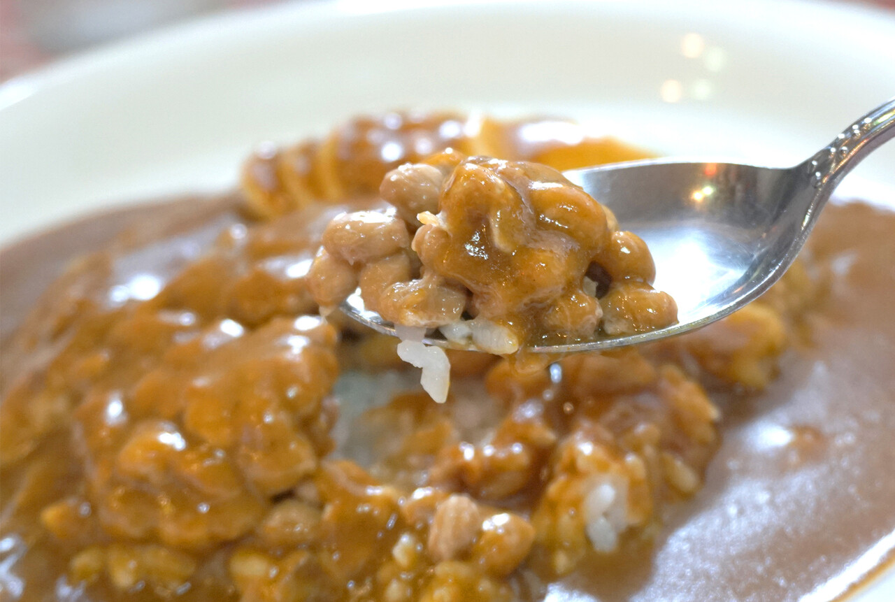 納豆は混ぜてないせいか、そんなに糸を引いていなくて、食べやすいです。