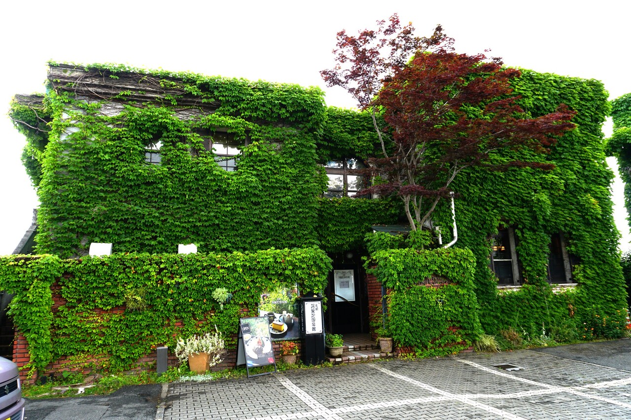 蔦に覆われたレンガ造りの洋館です。