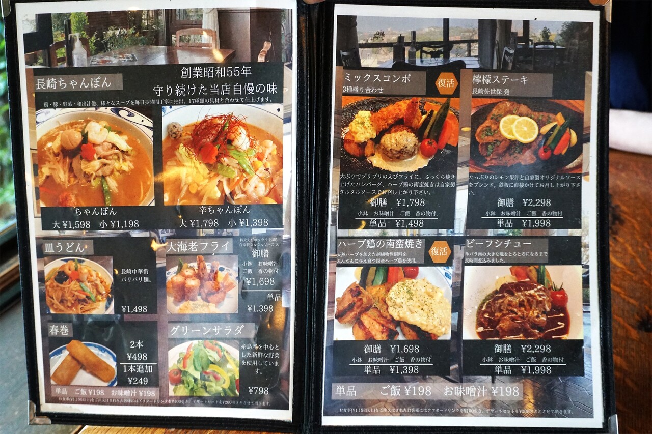 お食事メニューが豊富で、チャンポンやレモンステーキなど長崎名物料理も人気です。