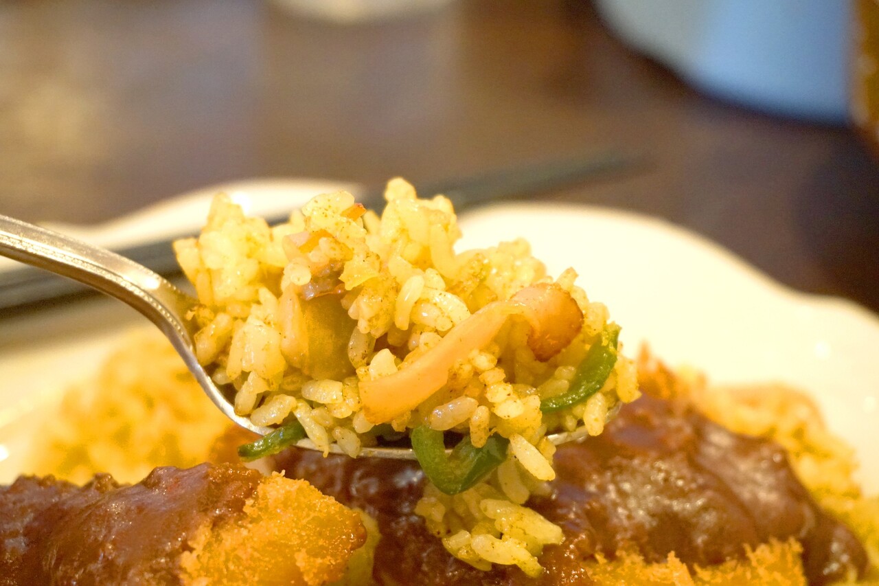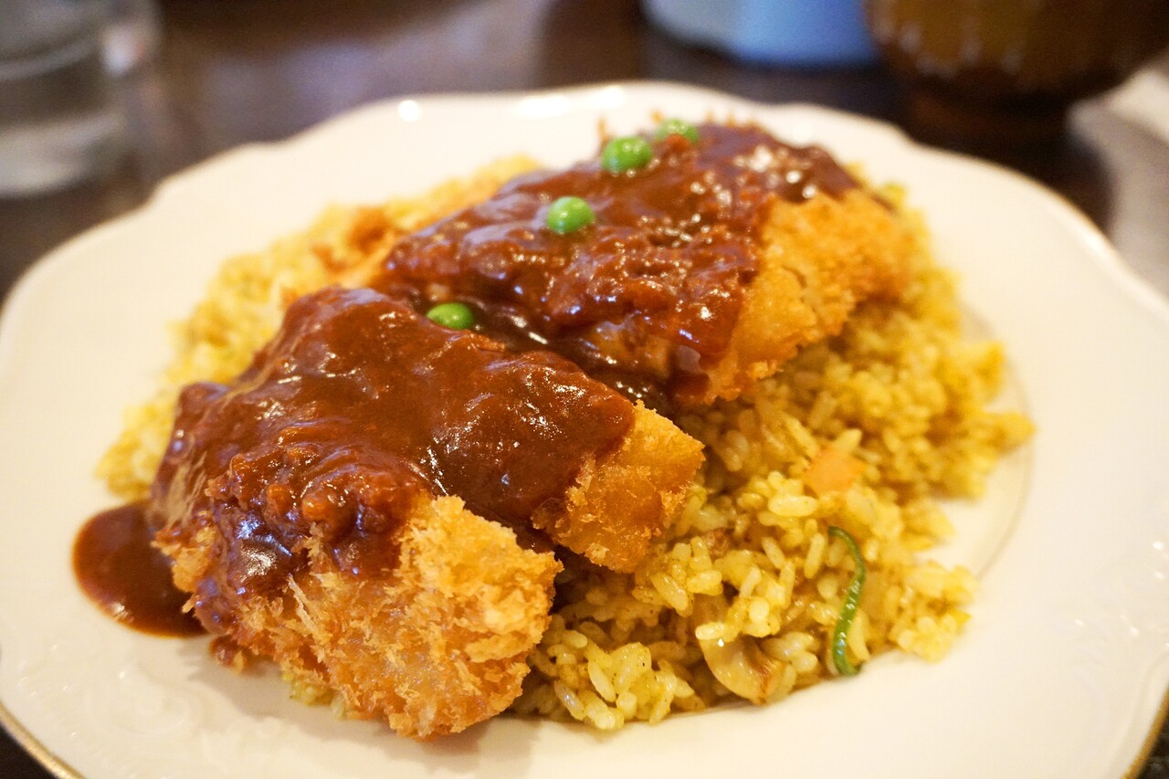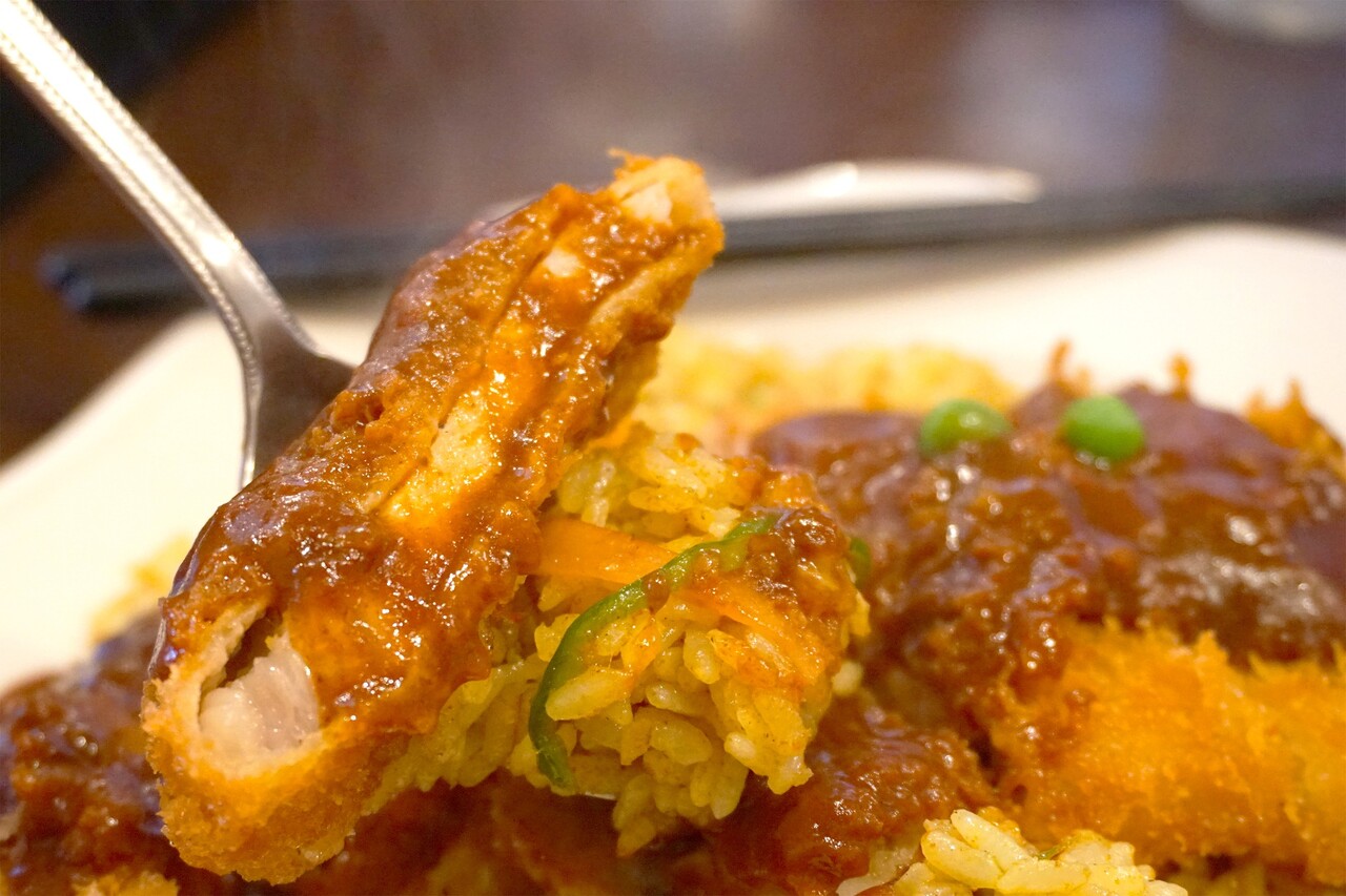 こちらはピラフ状のドライカレーとトンカツにアレンジされています。