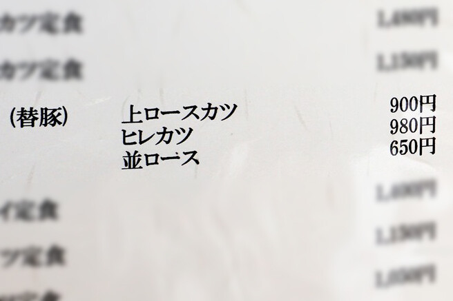 一番安いのは、小ヒレカツ定食(※おかわり有料)1,150円・並ロースカツ定食(おかわり無料)1,150円です。