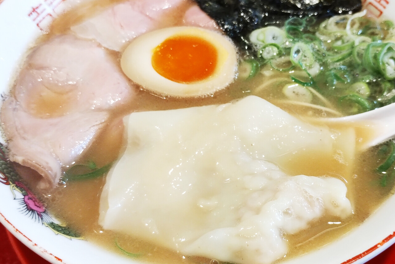 極厚皮のデカいワンタン、半熟煮玉子。