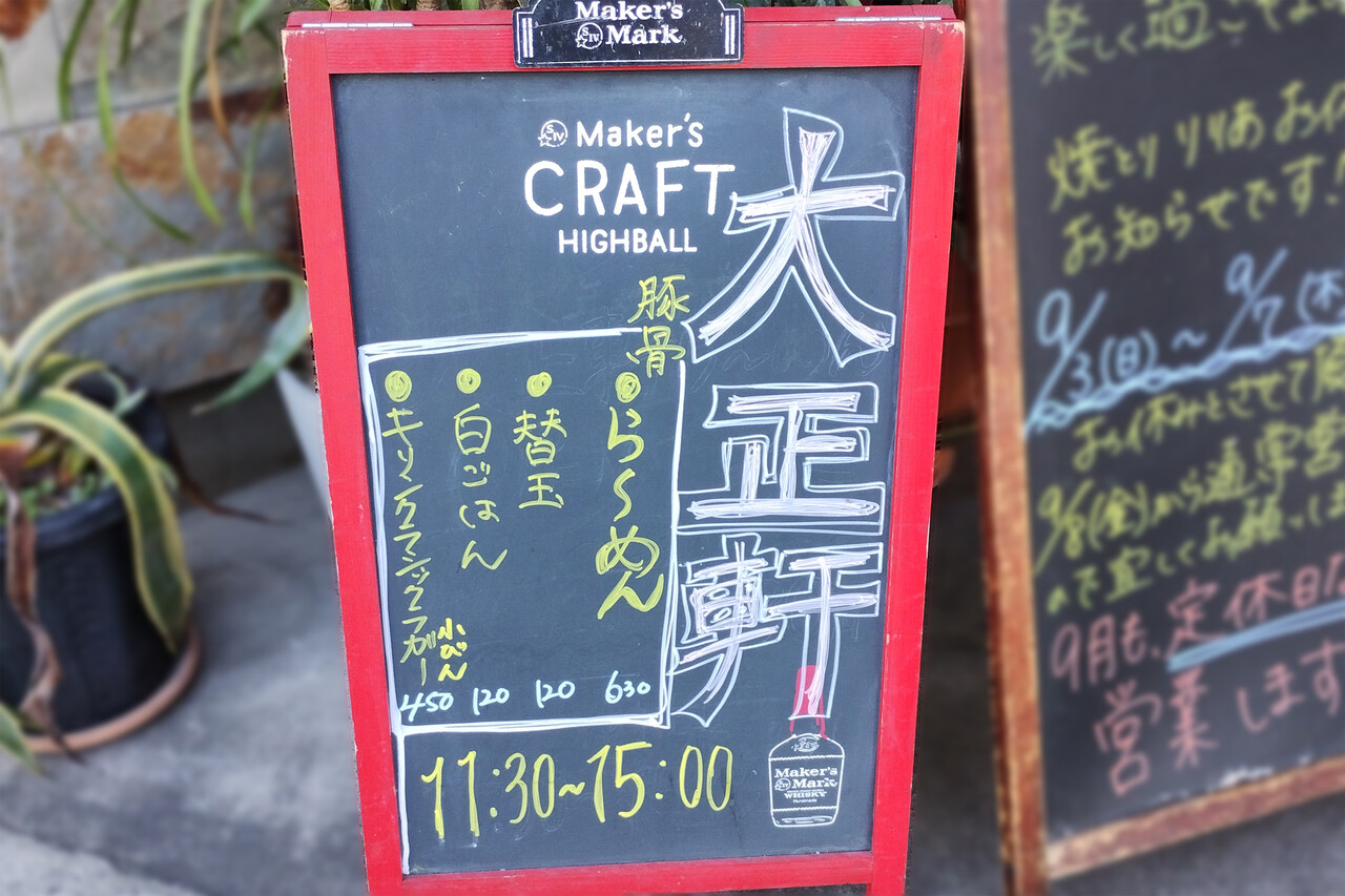 昭和レトロ風の看板を掲げる『大正軒ラーメン』。
