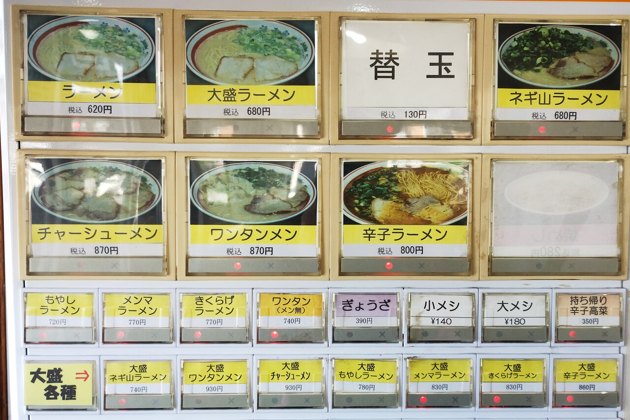 基本の豚骨ラーメンは620円、替玉は130円です。