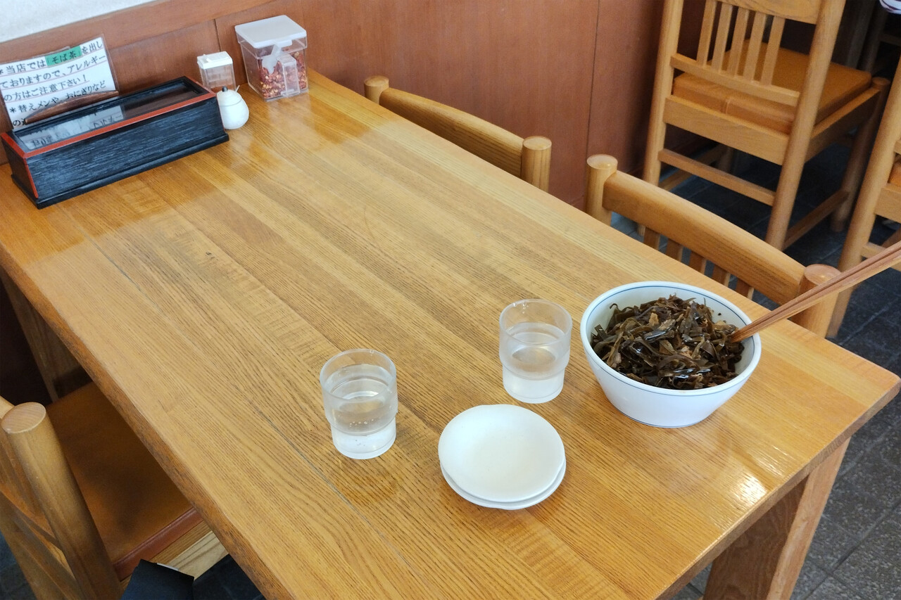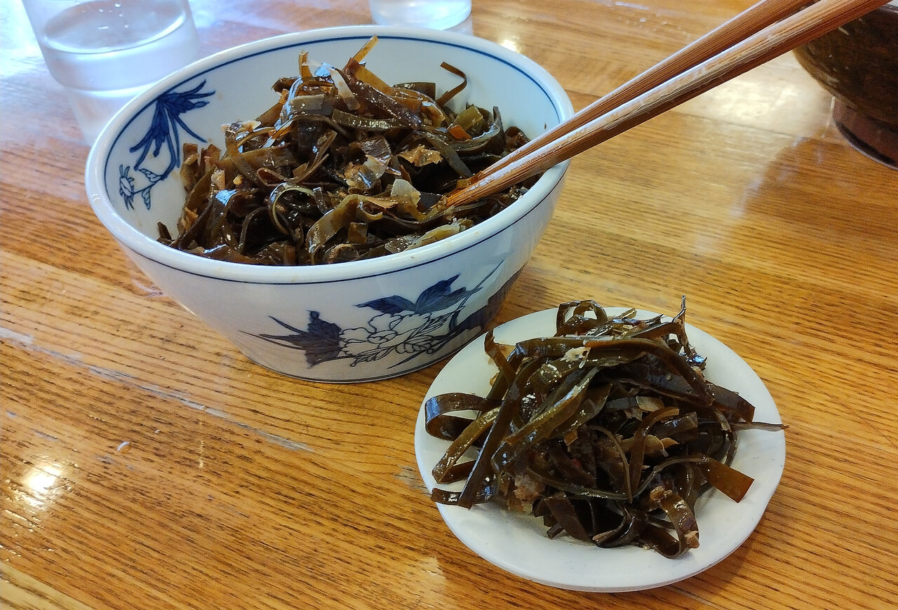 卓上に置いてある、出汁昆布とかつお節を使った佃煮。