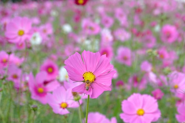 約7ヘクタールの花園には、約1,000万本のコスモスが咲き乱れます。