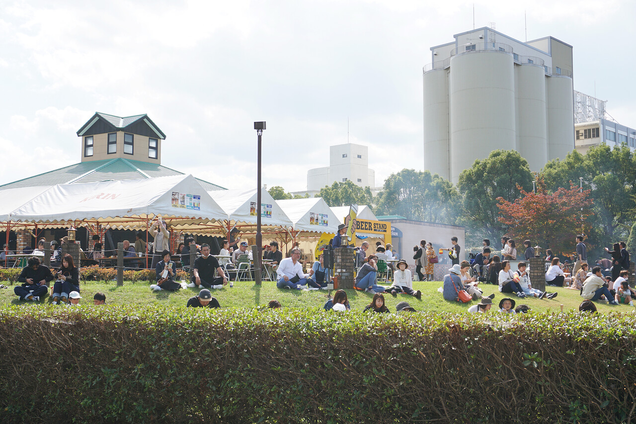 工場で出来立てのビールを楽しめる『ビア スタンド』も大盛況。