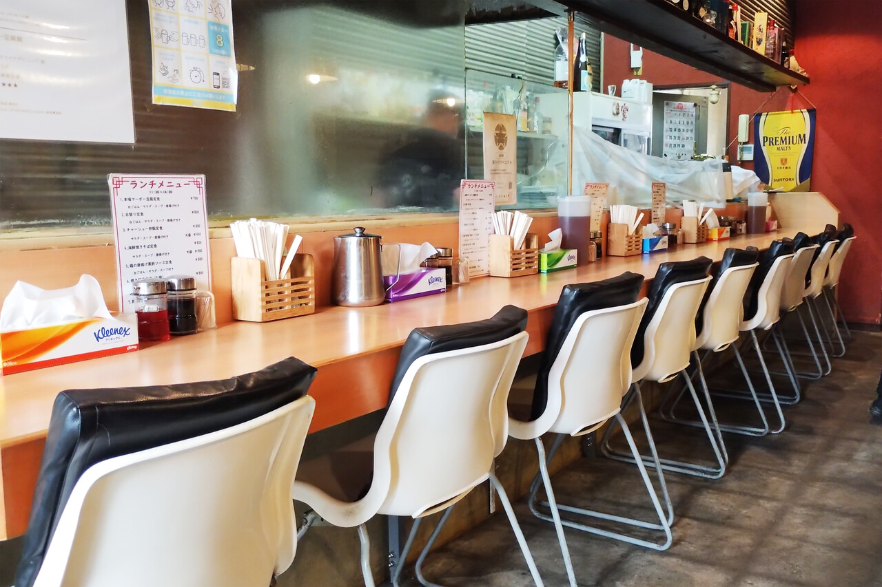 ランチタイムは、近隣の会社員で一杯になる人気店です。