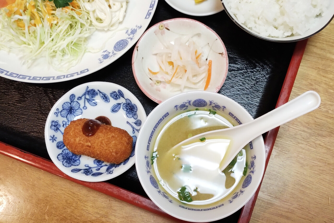 【福岡】イニシエ町中華のモツ鍋風チャンポン&ビーフコロッケ定食♪@長喜園