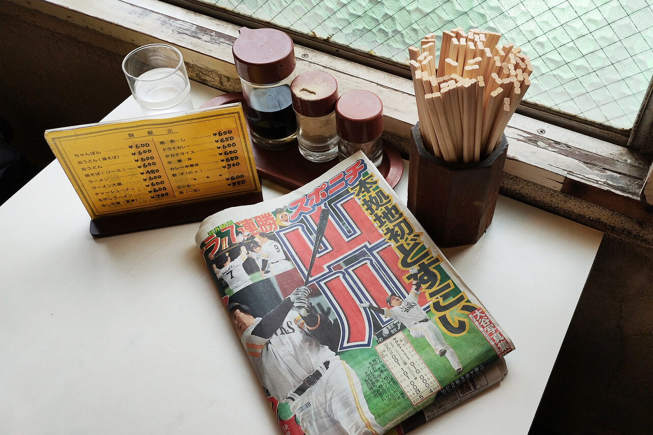 入ると、ご年配の大将が丁寧に紙ナプキンを一枚一枚三角に折っておられました。
