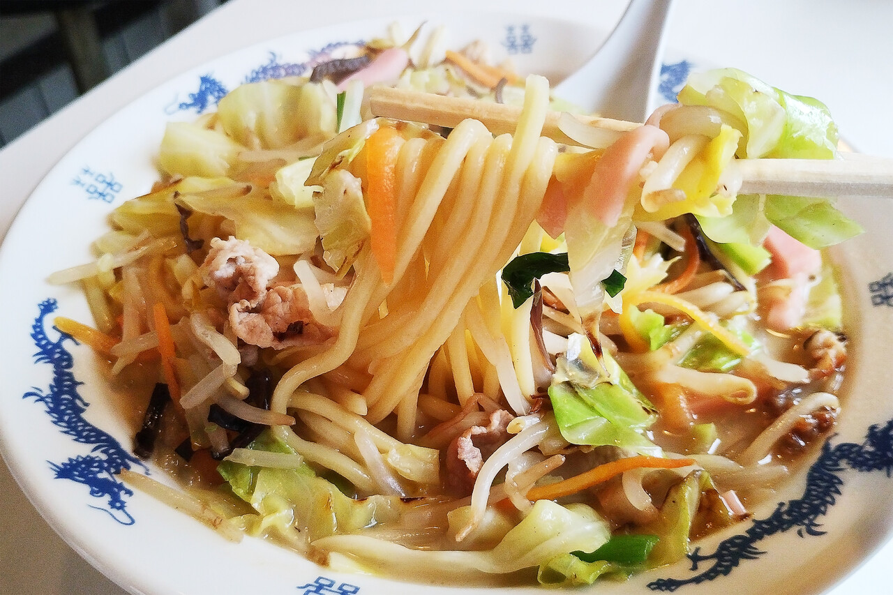 チャンポンにすると炒め野菜の旨味が加わって丁度良い感じ。