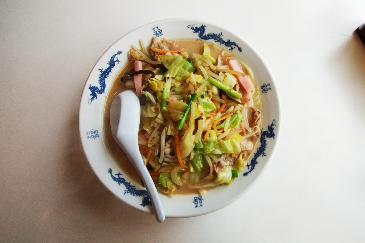 麺もそこそこにヤワい、イニシエ食堂にありがちなクタヤワ系チャンポン。