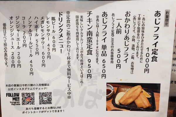 【店名】あじフライ食堂 かば 公式Instagarm