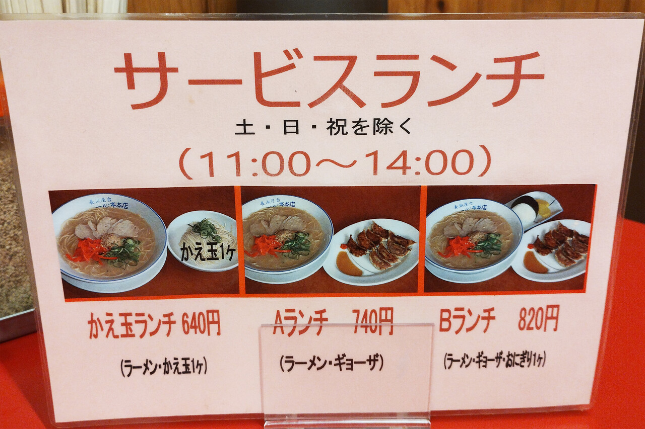 かえ玉ランチ(ラーメン+替玉)が640円。