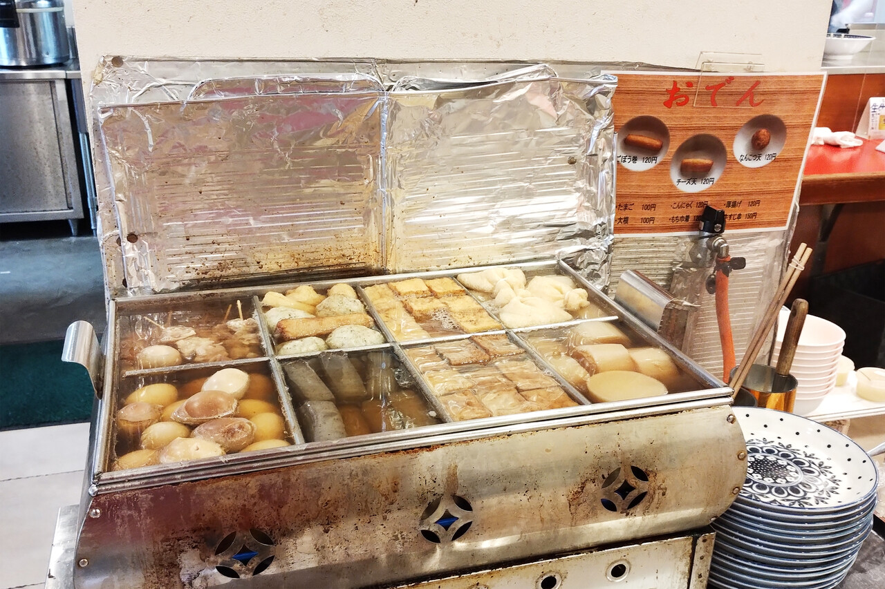 おでんもあります。牛すじ串150円以外は各100〜120円。