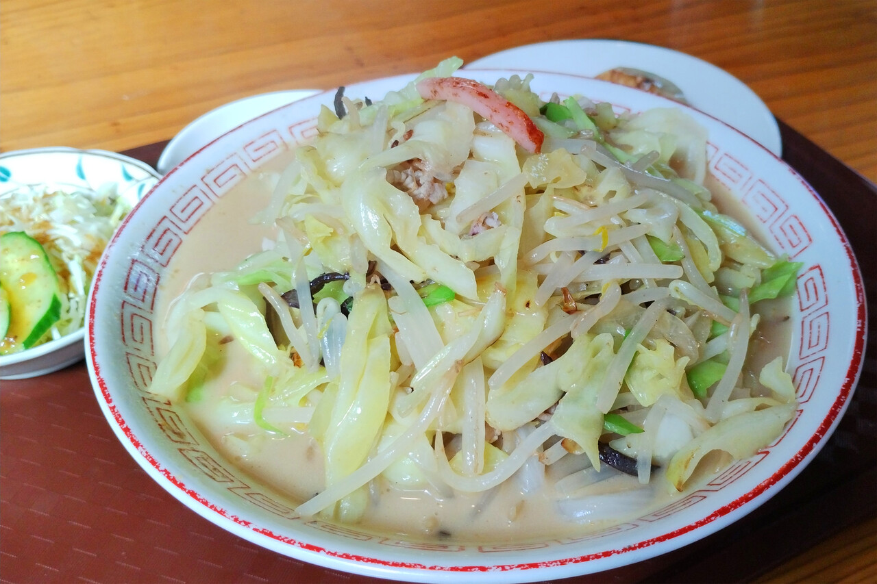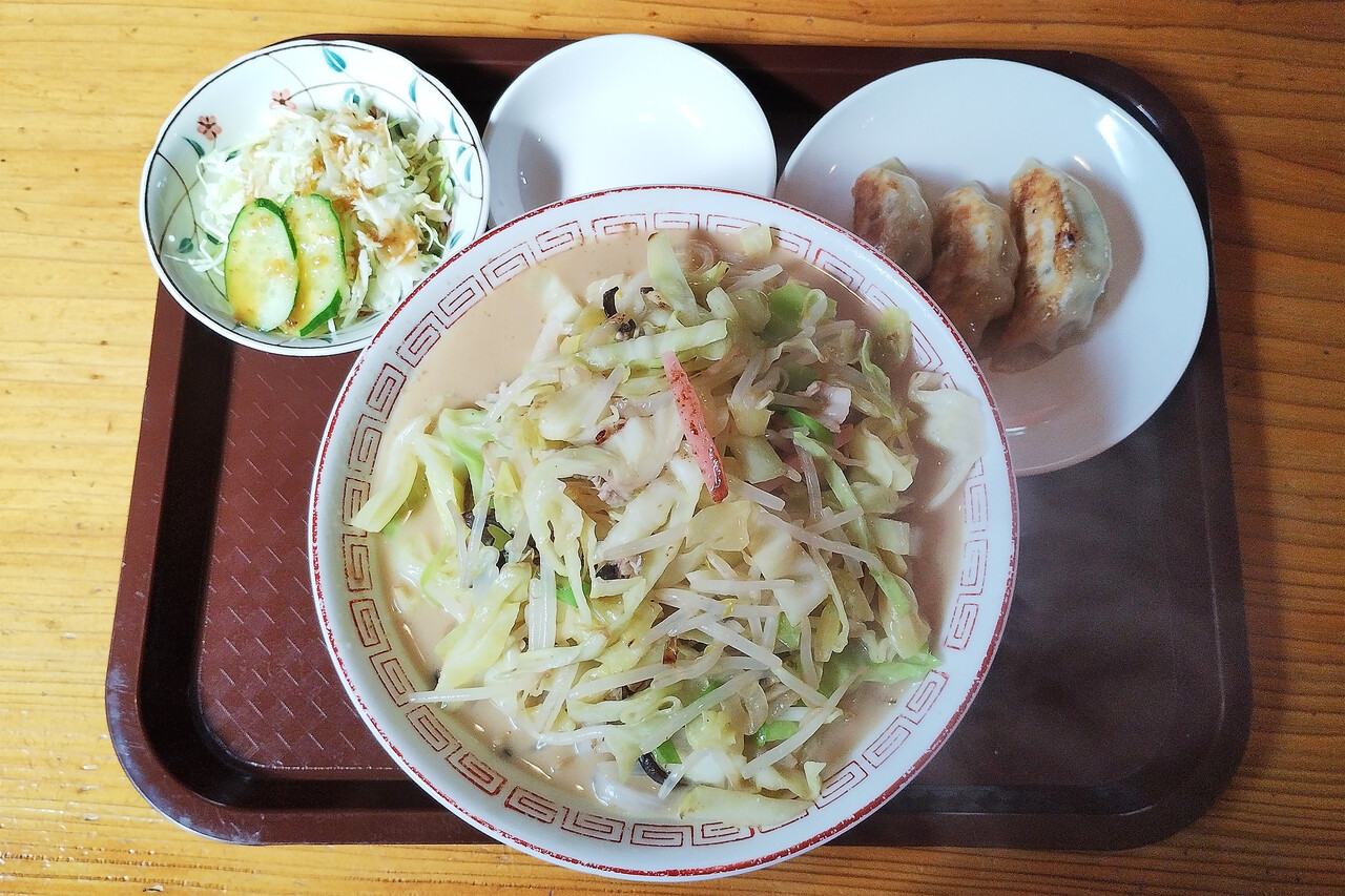 チャンポンセット(チャンポン・餃子3個・サラダ・小めし)の小めし抜きにしました。
