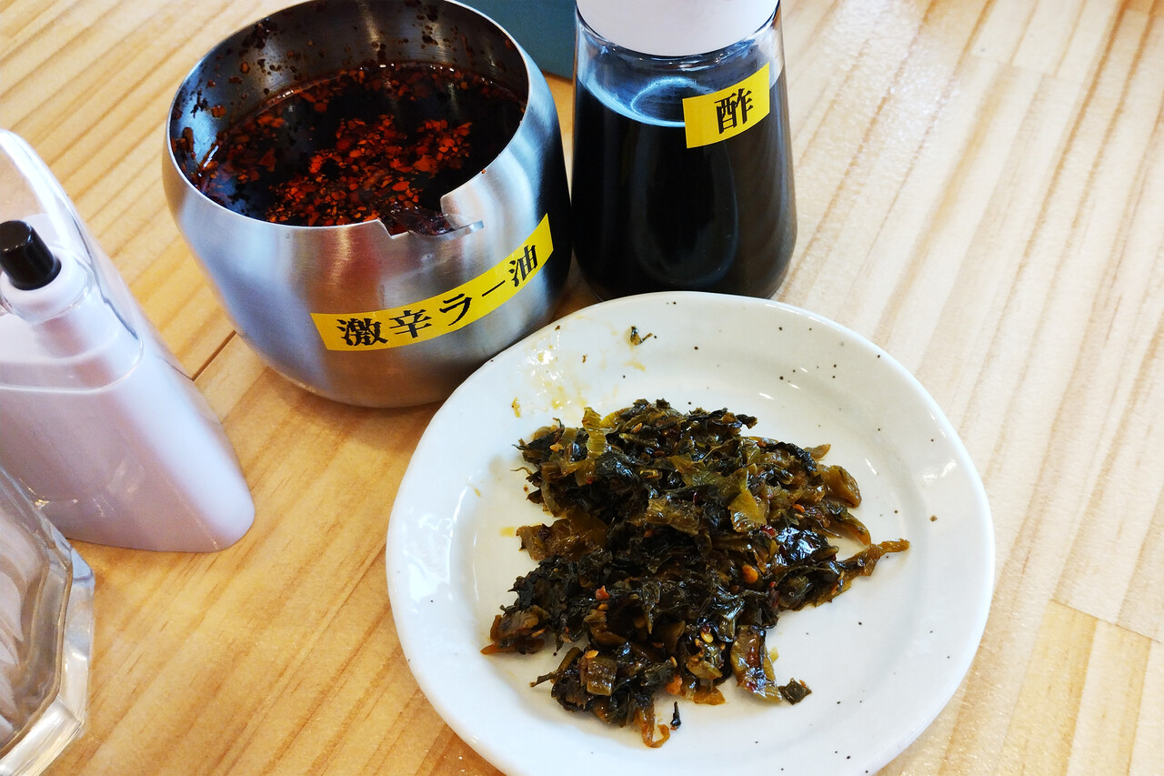 甘味がある醤油スープなので、卓上のラー油を垂らしても美味しい。