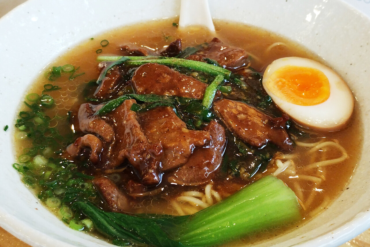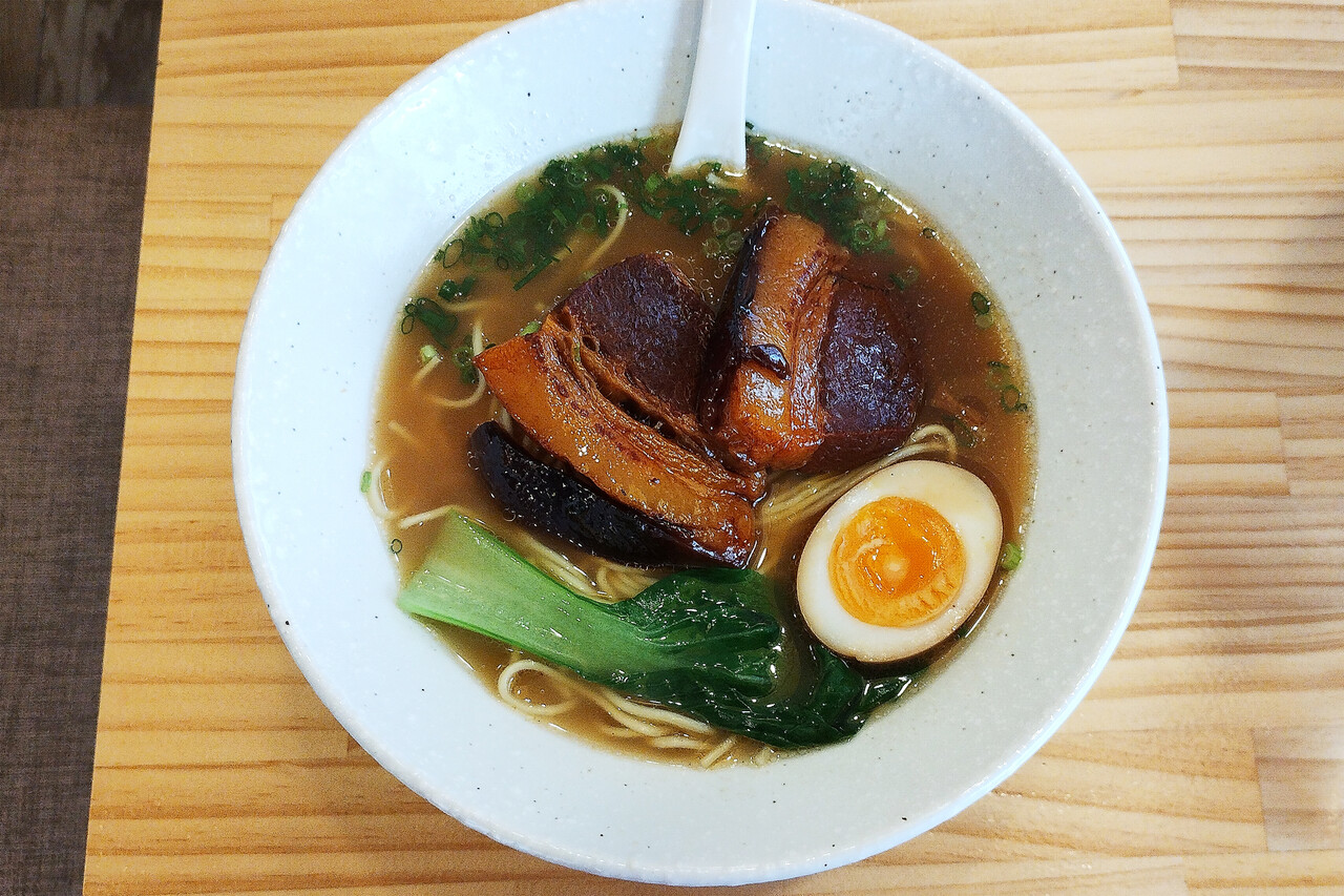 スープは醤油味だけど、日本の醤油ラーメンや中華そばのスープとは違いますね〜。